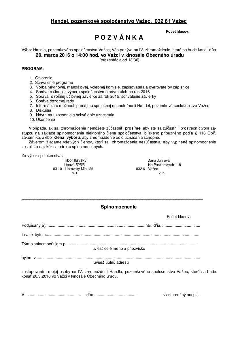 Handel, pozemkové spoločenstvo Važec